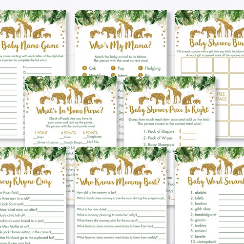 Gold Safari Animal Baby Shower Games Package Safari Baby Etsy